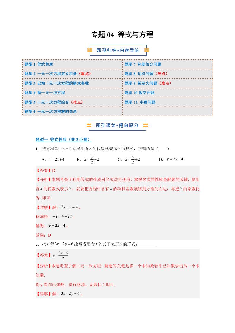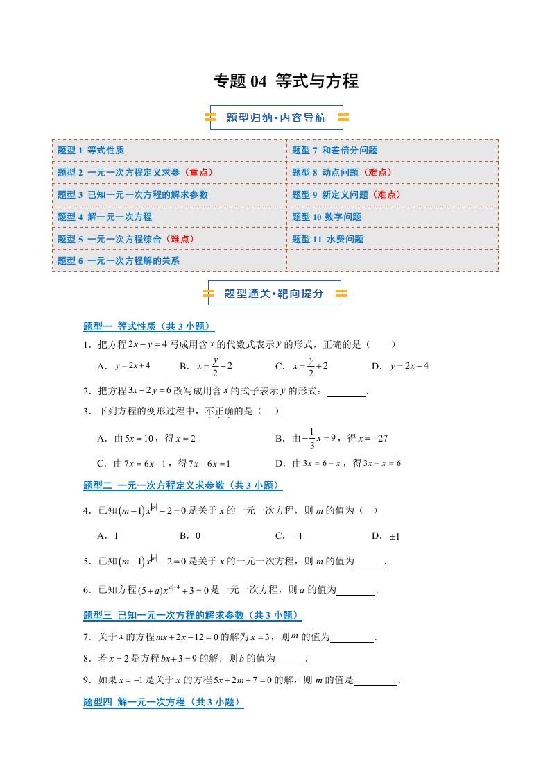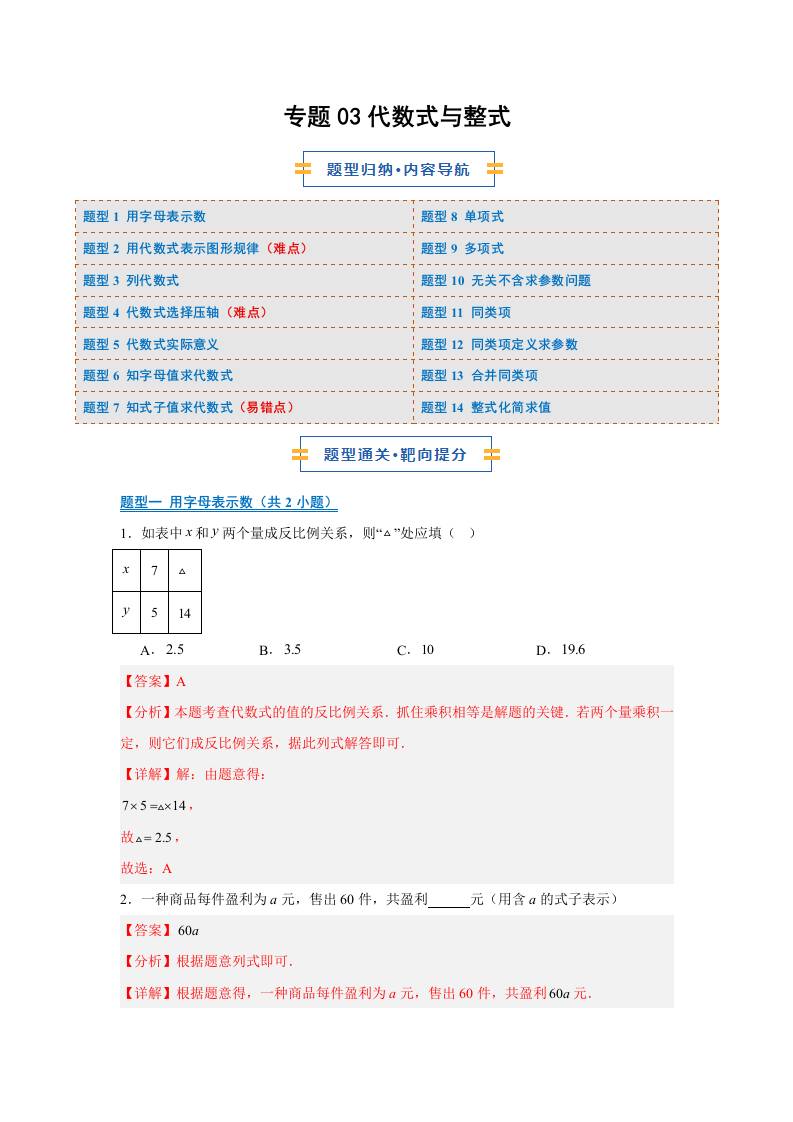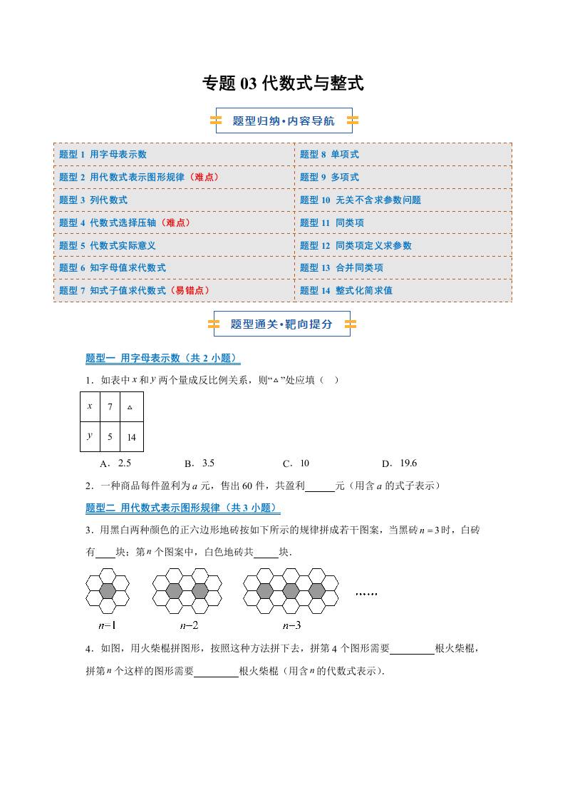 专题03 整式与等式(13个考点梳理+题型解读+提升训练)(学生版)
