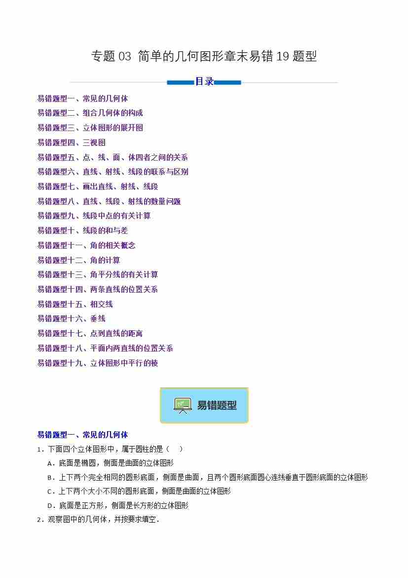 专题03 简单的几何图形章末易错19题型(专项训练)(学生版)