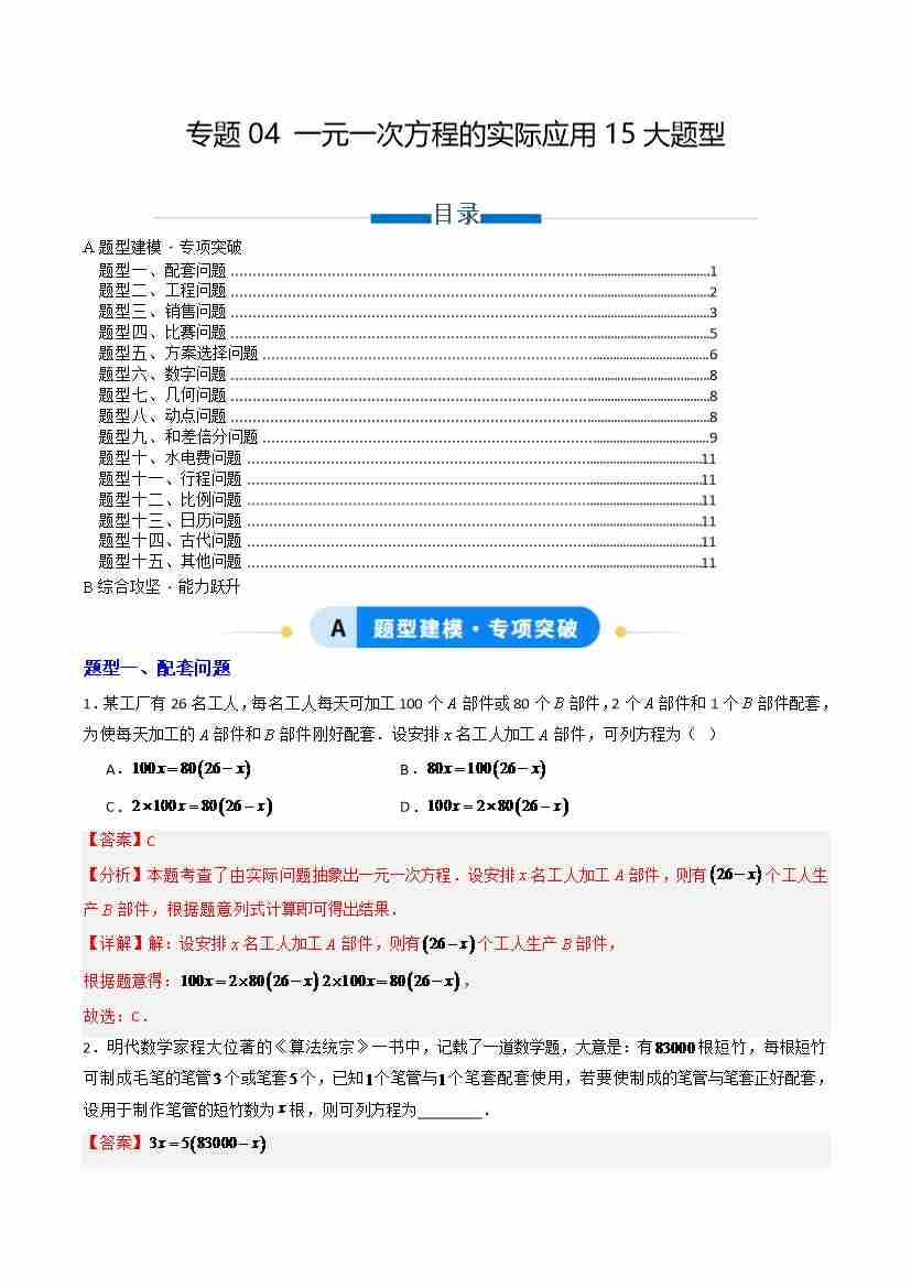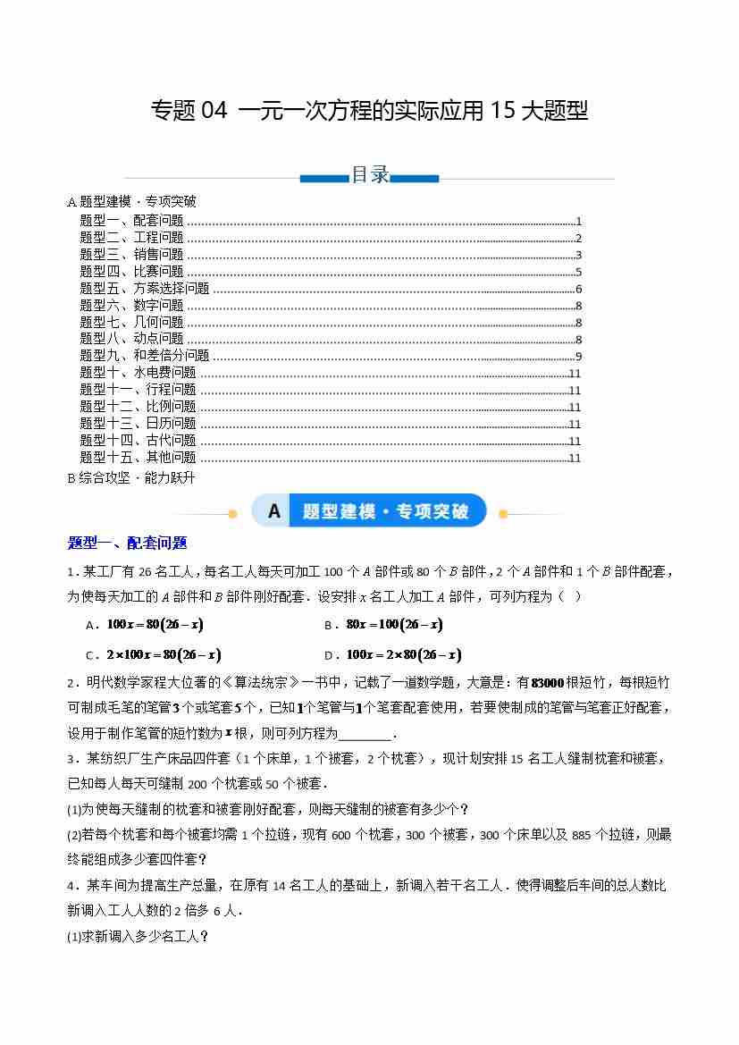 专题04 一元一次方程的实际应用15大题型(专项训练)(学生版)