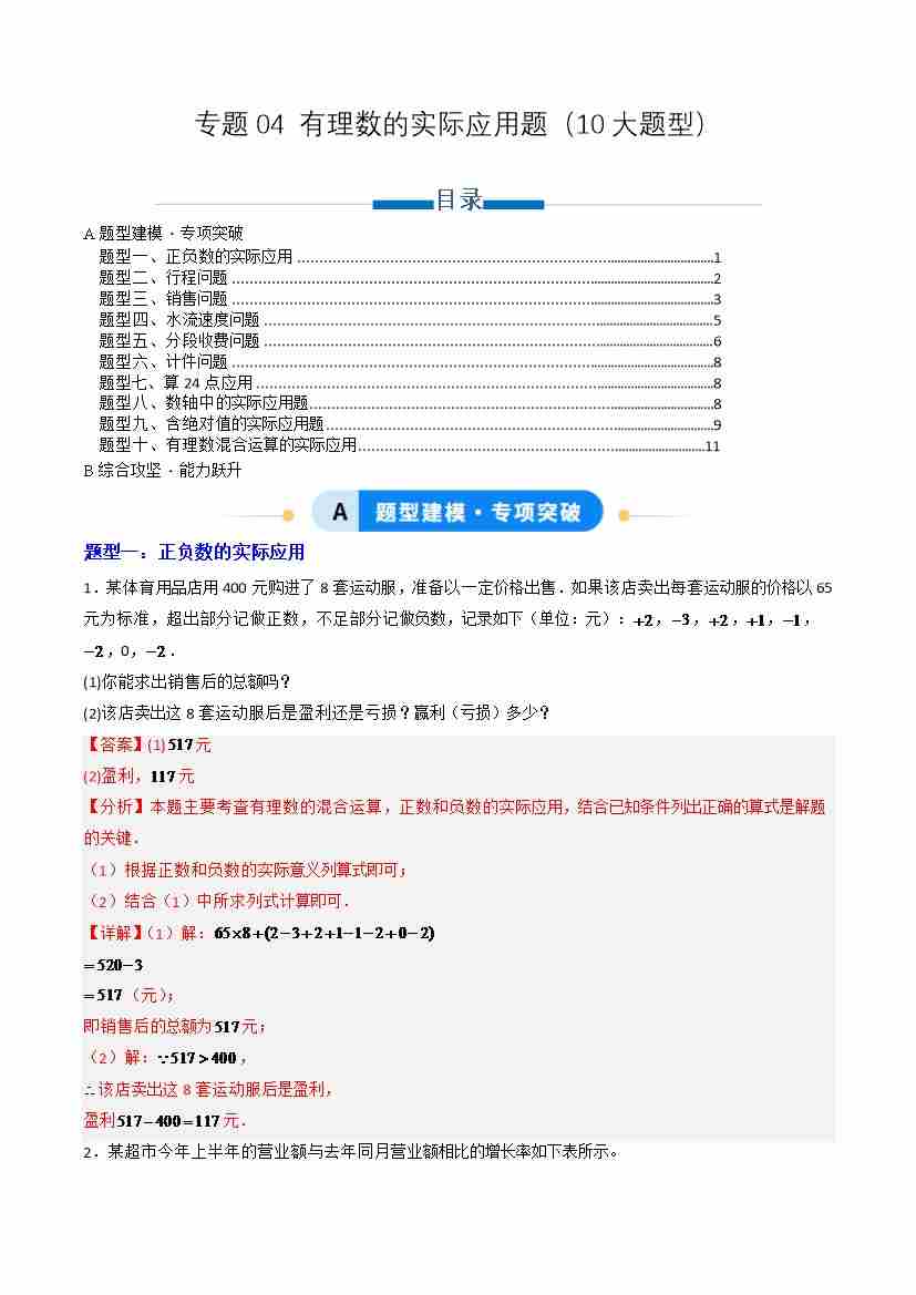 专题04 有理数的实际应用题10大题型(专项训练)(教师版)