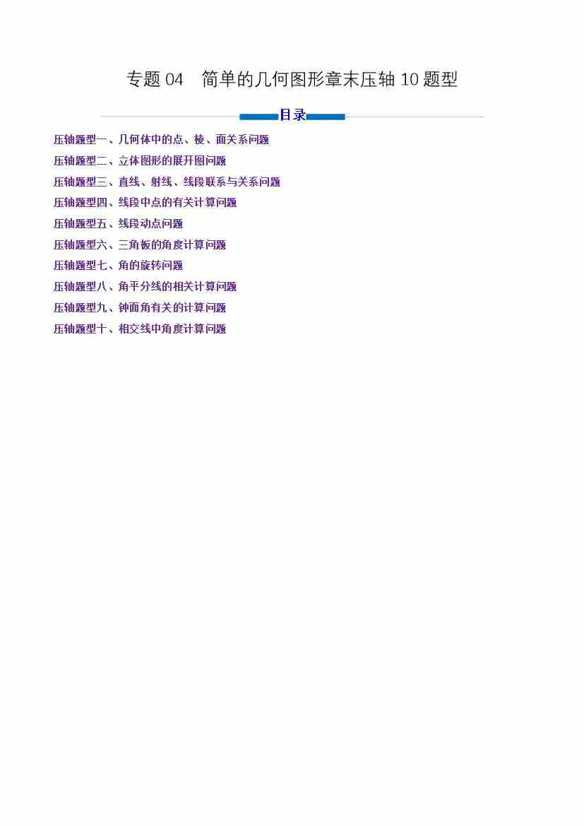 专题04 简单的几何图形章末压轴10题型(专项训练)(学生版)