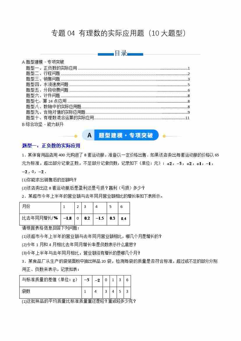 专题04 有理数的实际应用题10大题型(专项训练)(学生版)