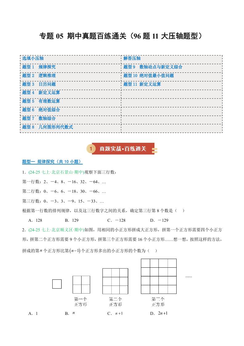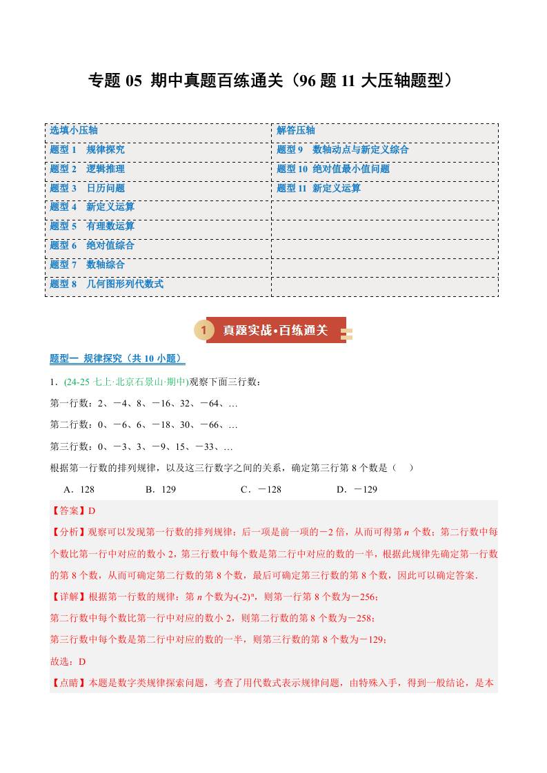 专题05 期中真题百练通关 11个题型(期中专项训练)(学生版)