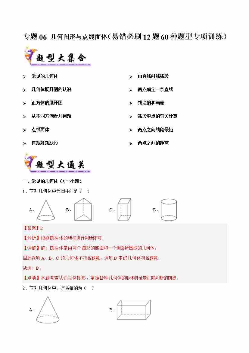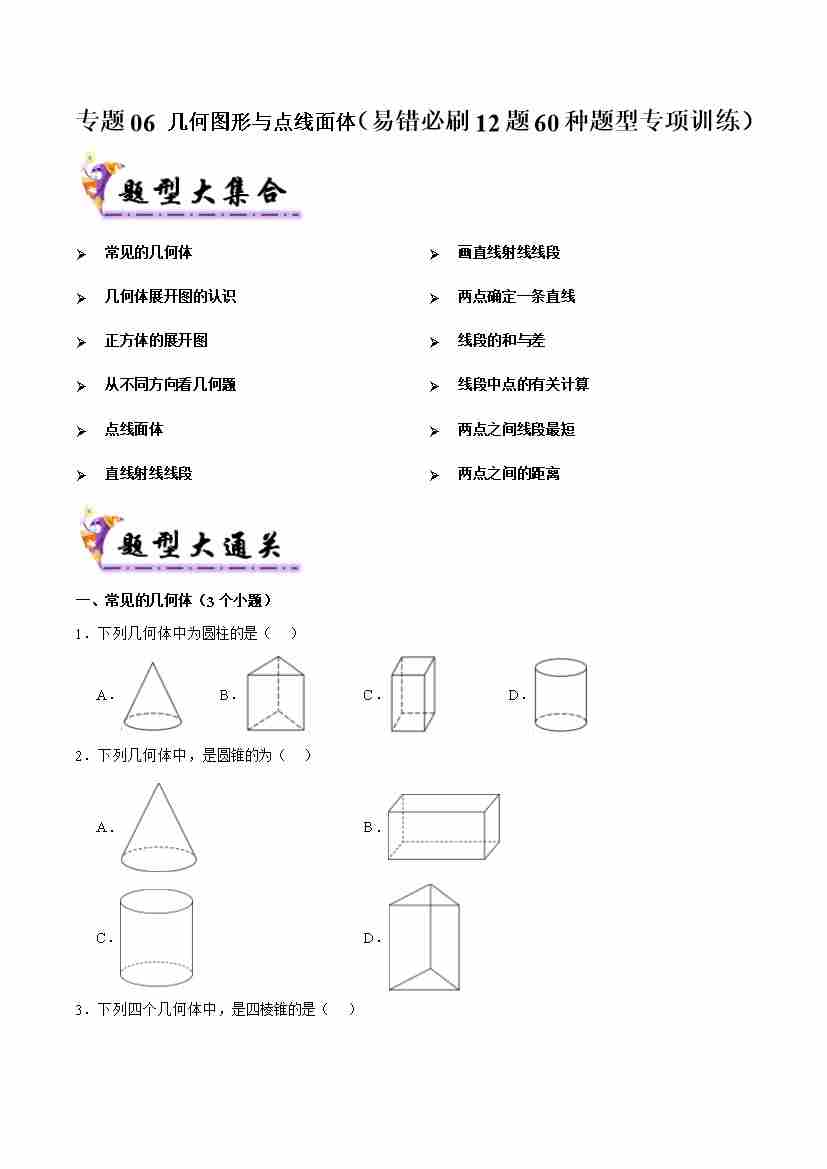 专题06 几何图形与点线面体(考题猜想,易错必刷12题60种题型专项训练)(学生版)