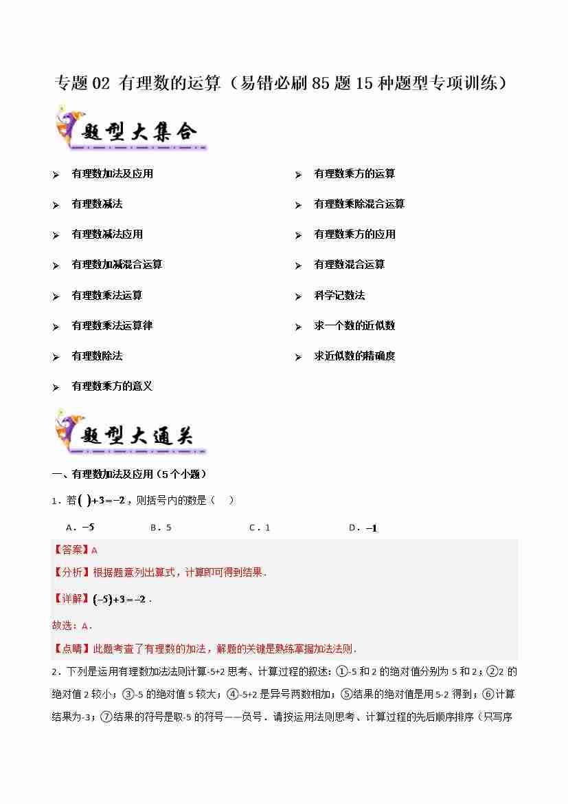 专题02 有理数的运算(考题猜想 易错必刷85题15种题型)(教师版)