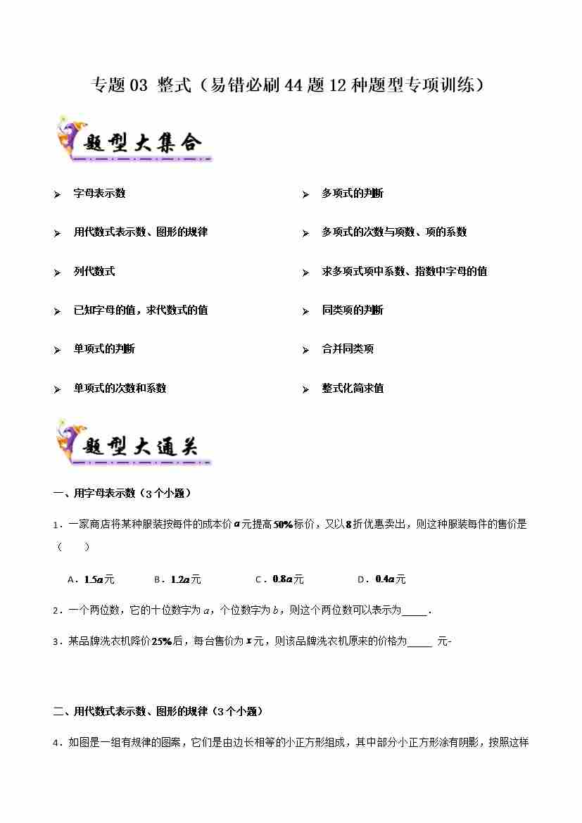 专题03 整式(考题猜想,易错必刷44题12种题型专项训练)(学生版)