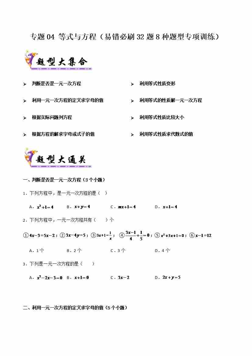 专题04 等式与方程(考题猜想,易错必刷32题8种题型专项训练)(学生版)