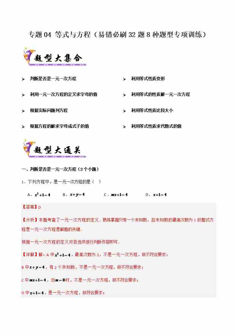 专题04 等式与方程(考题猜想,易错必刷32题8种题型专项训练)(教师版)
