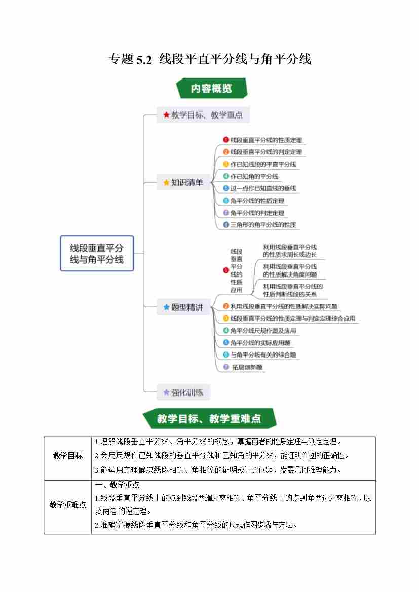 专题5.2 线段平直平分线与角平分线(高效培优讲义)(原卷版)