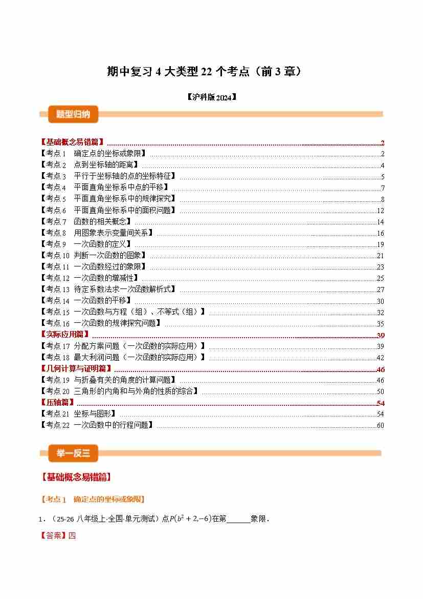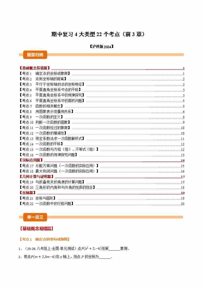期中复习4大类型22个考点(举一反三期中专项训练)(学生版)