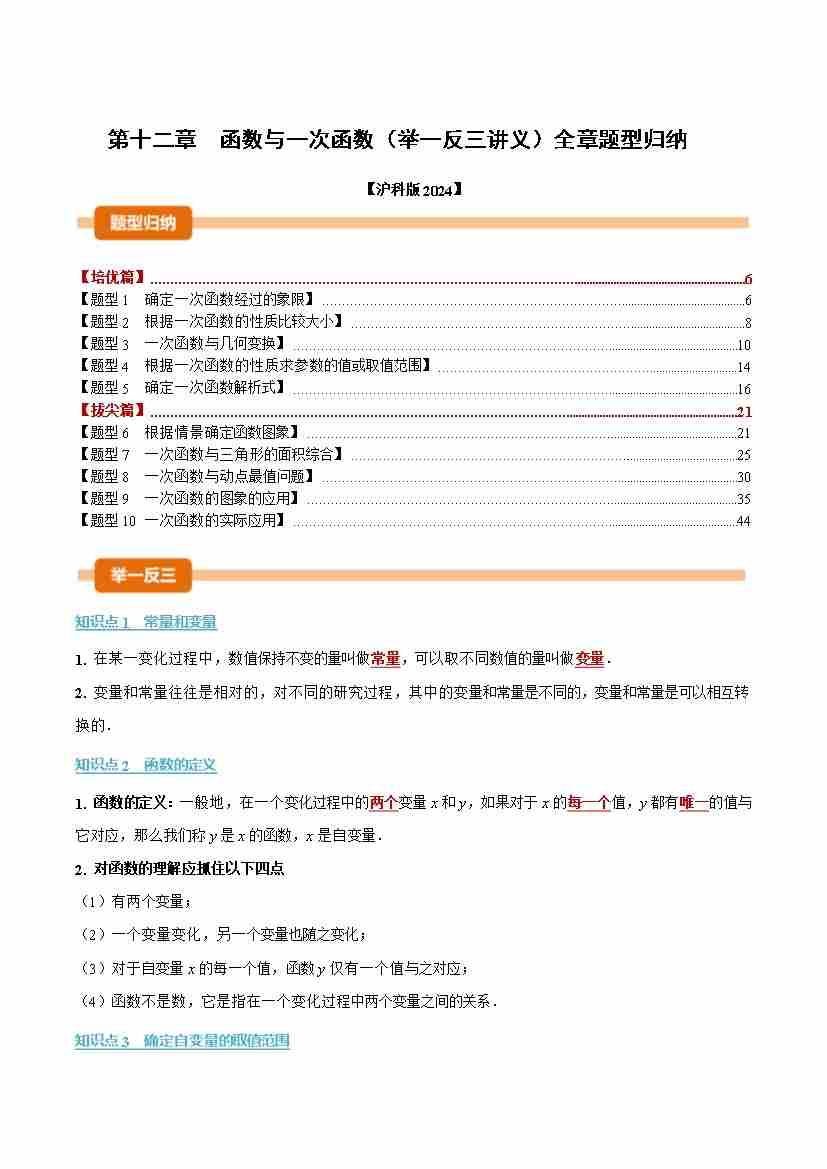 第十二章 函数与一次函数(举一反三讲义)(教师版)