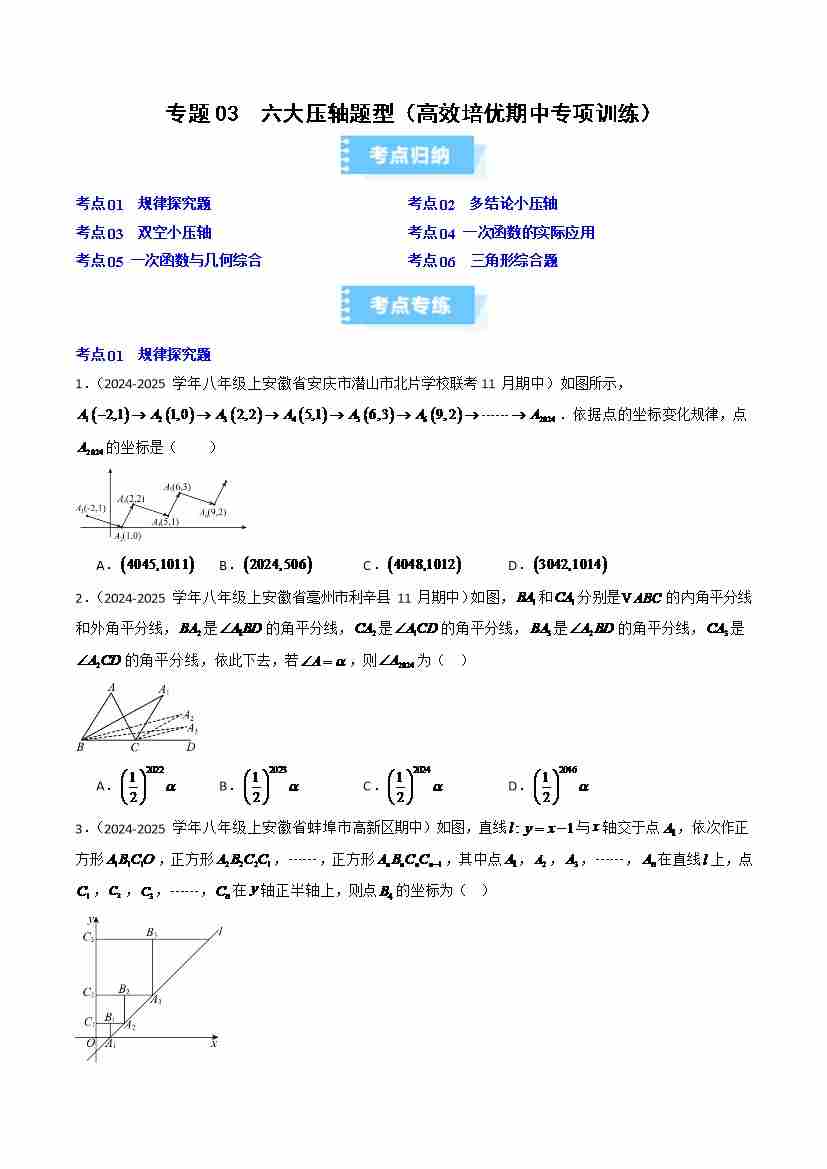 专题03 六大压轴题型(高效培优期中专项训练)(学生版)