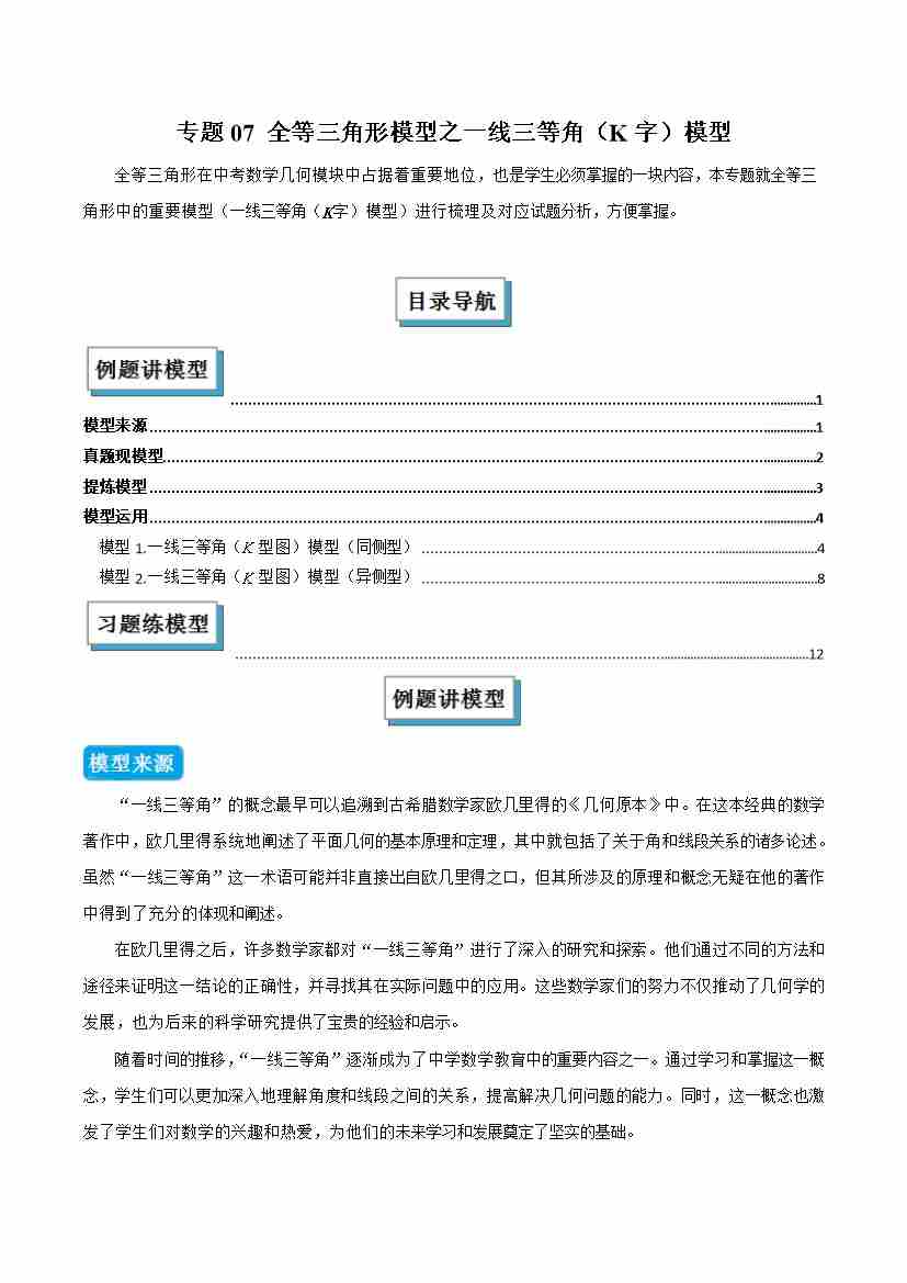 专题07 全等三角形模型之一线三等角(K字)模型(几何模型讲义)(学生版)八上沪科