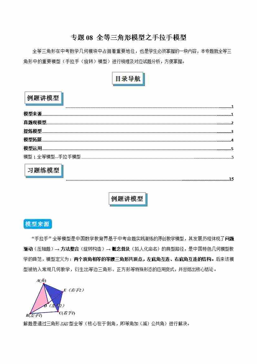 专题08 全等三角形模型之手拉手模型(几何模型讲义)(学生版)八上沪科