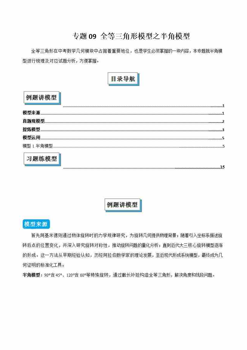 专题09 全等三角形模型之半角模型(几何模型讲义)(学生版)八上沪科