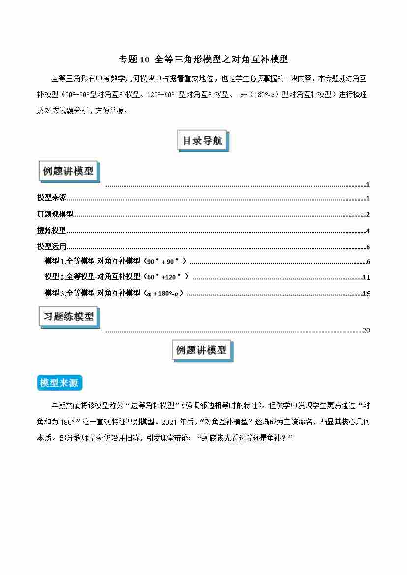 专题10 全等三角形模型之对角互补模型(几何模型讲义)(学生版)八上沪科