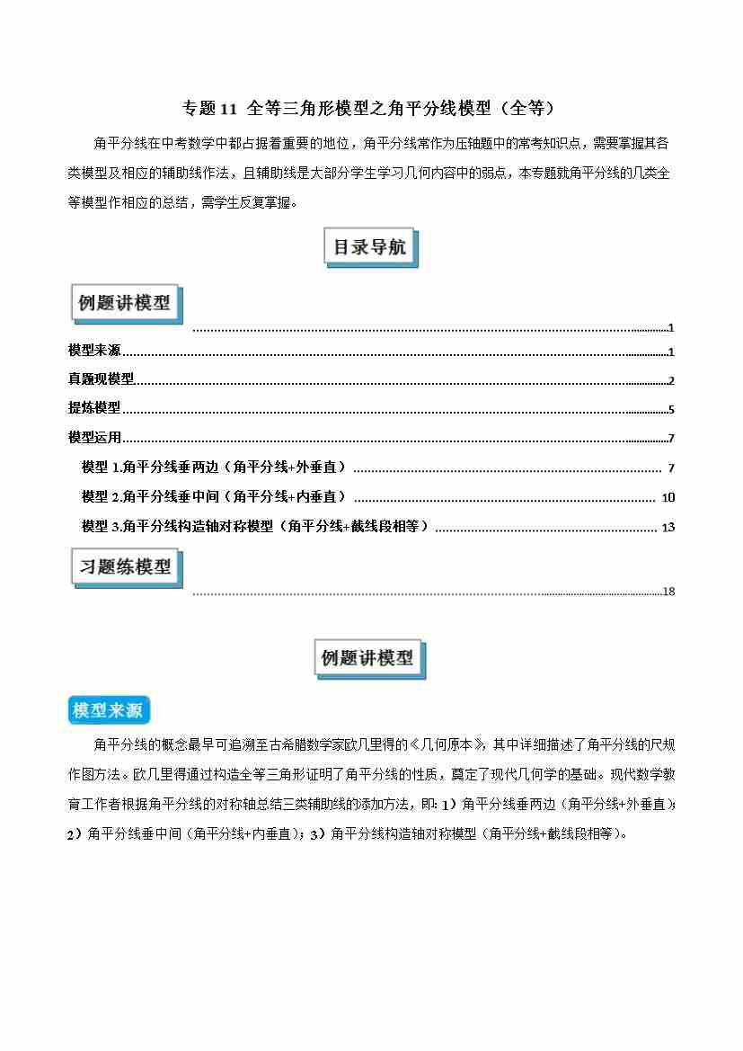 专题11 全等三角形模型之角平分线模型(全等)(几何模型讲义)(学生版)八上沪科