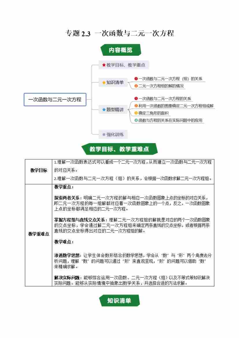 专题2.3 一次函数与二元一次方程(高效培优讲义)(学生版)