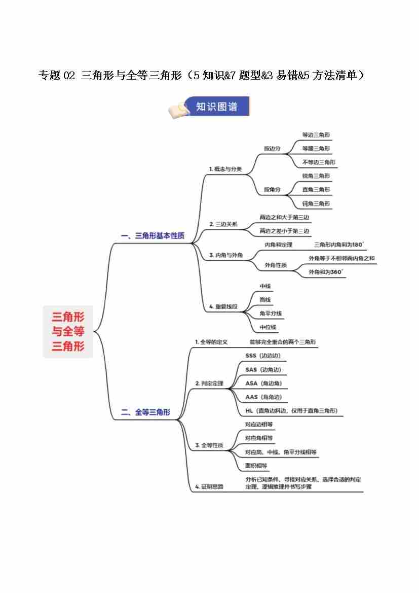 专题02 三角形与全等三角形(5知识&7题型&3易错&5方法清单)(期末复习知识清单)(学生版)