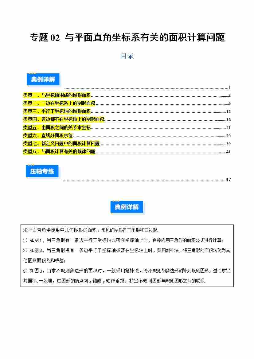 专题02 与平面直角坐标系有关的面积计算问题(压轴题专项训练)数学沪科版(学生版)