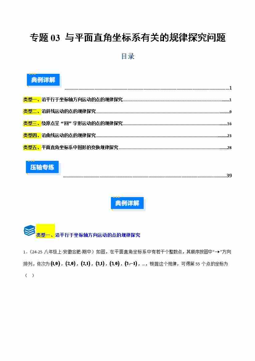 专题01 平面直角坐标系(压轴题专项训练)数学沪科版(学生版)