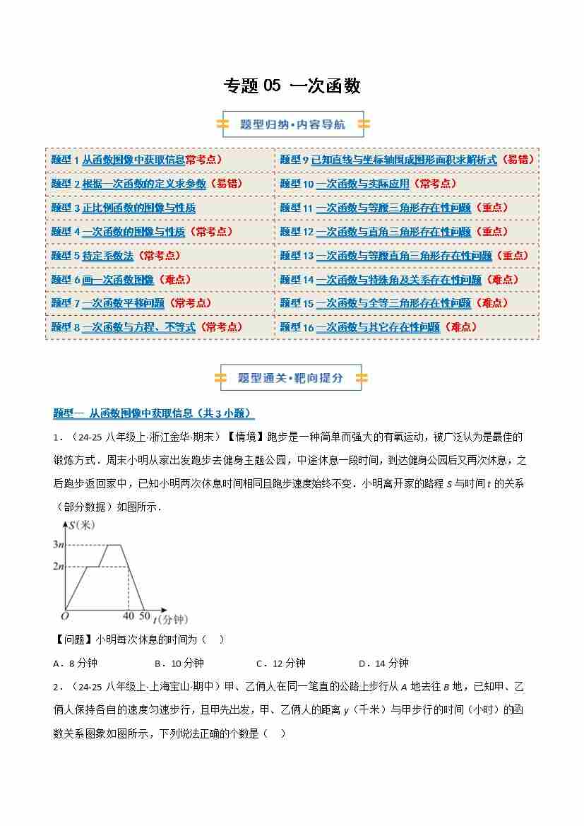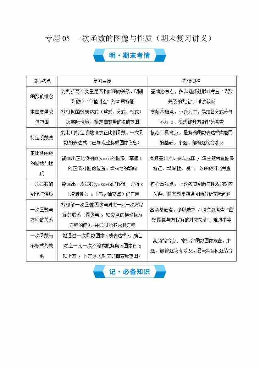 专题05 一次函数的图像与性质(期末复习讲义)学生版