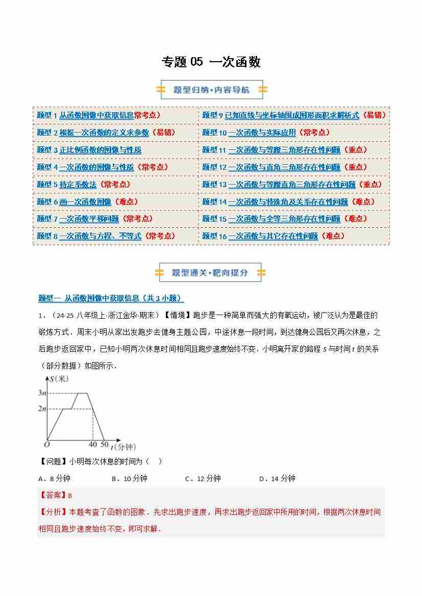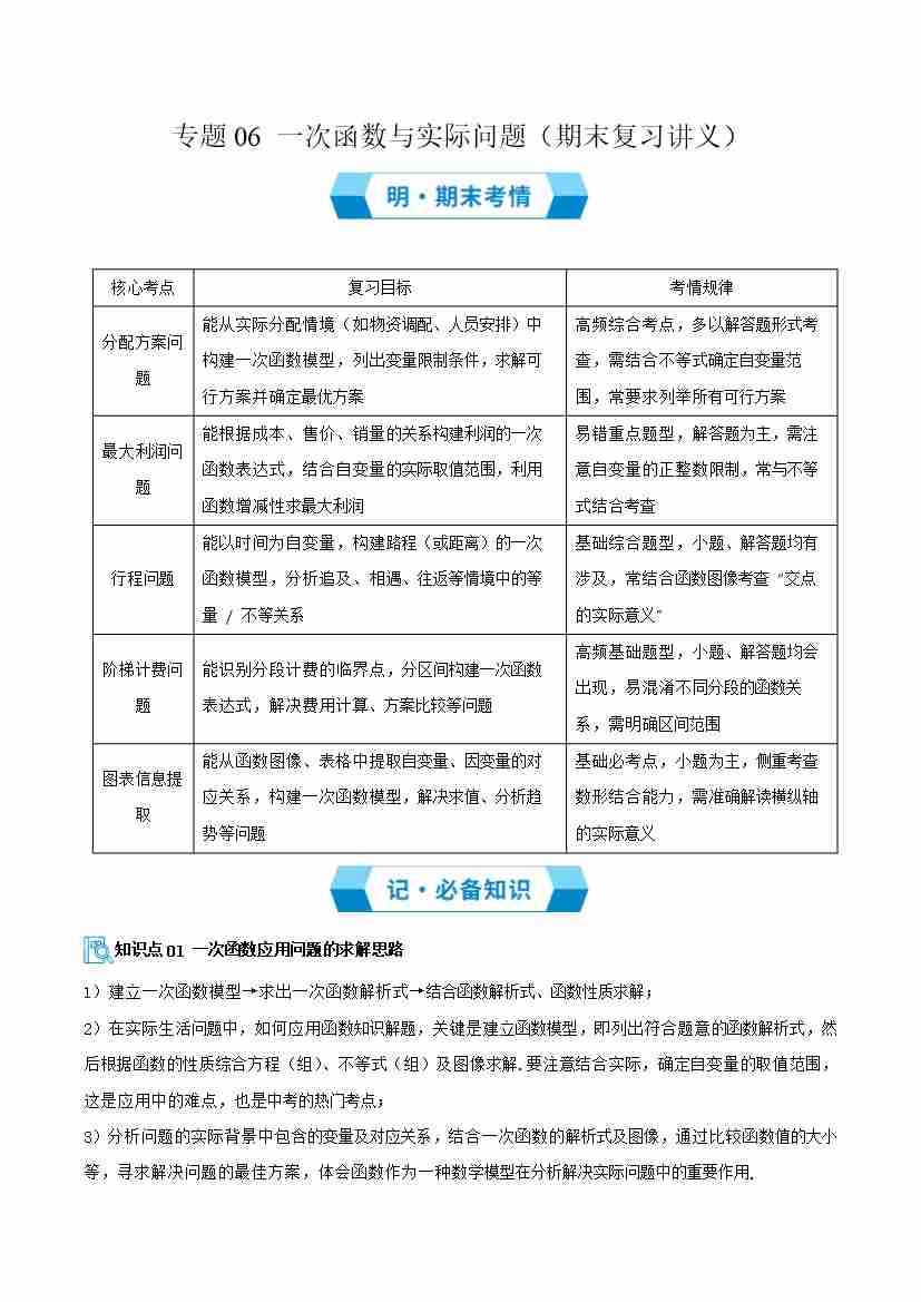 专题06 一次函数与实际问题(期末复习讲义)学生版-浙8