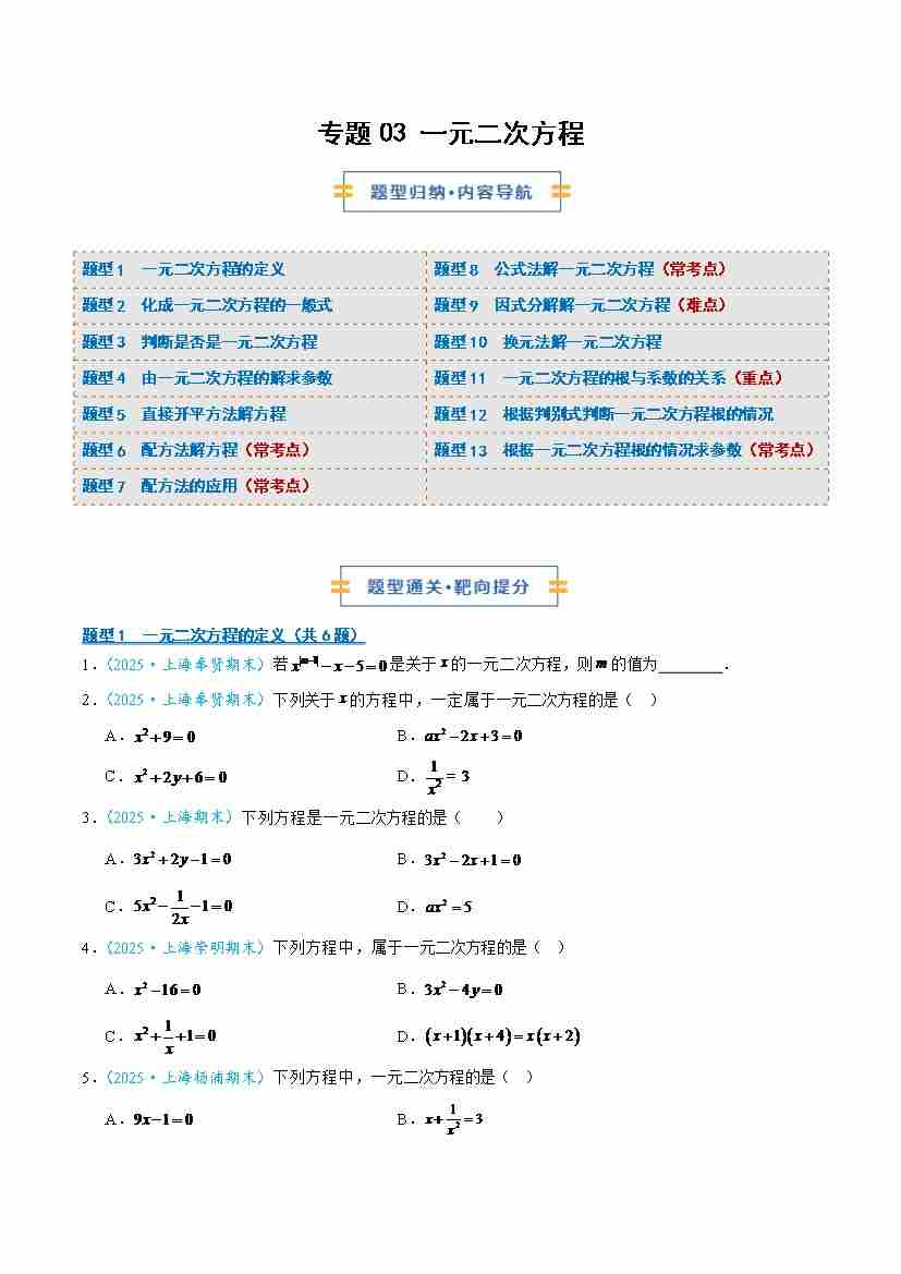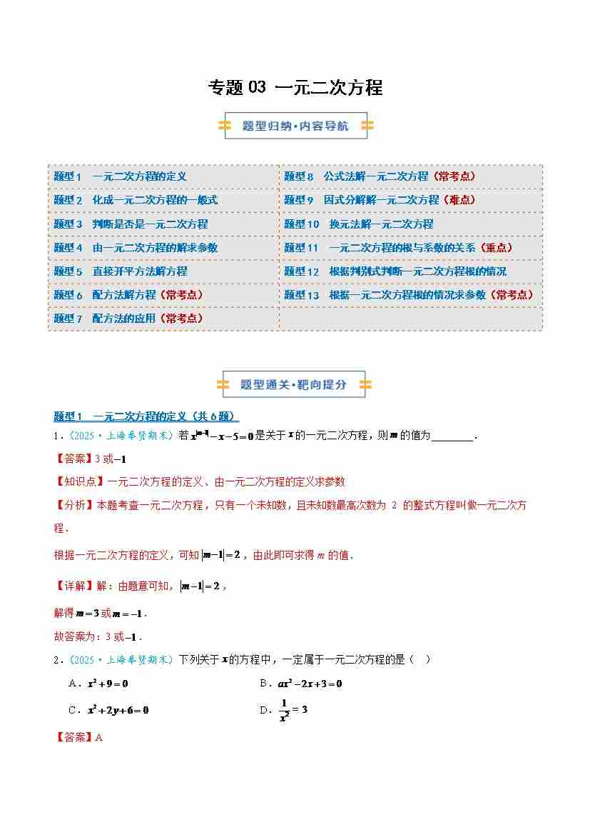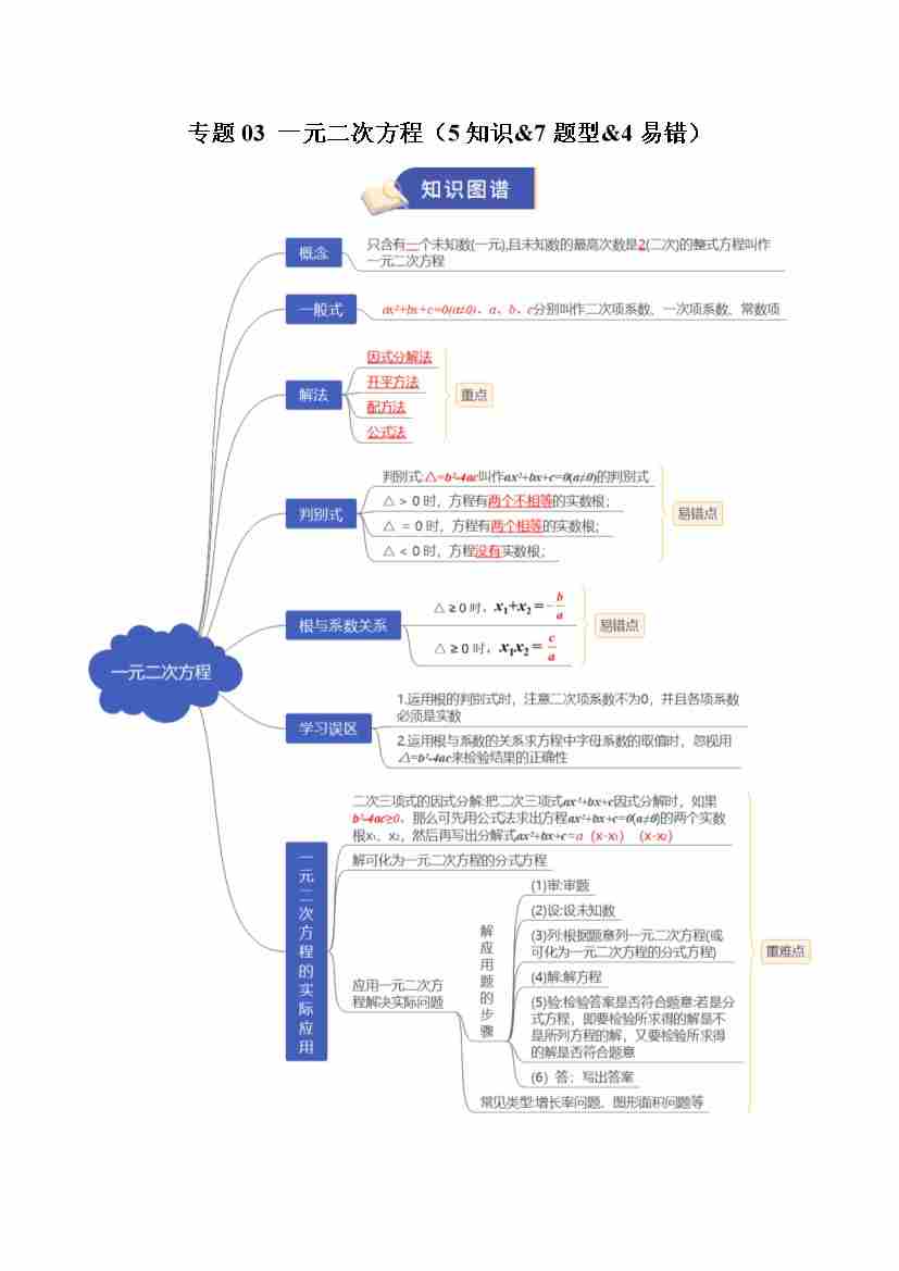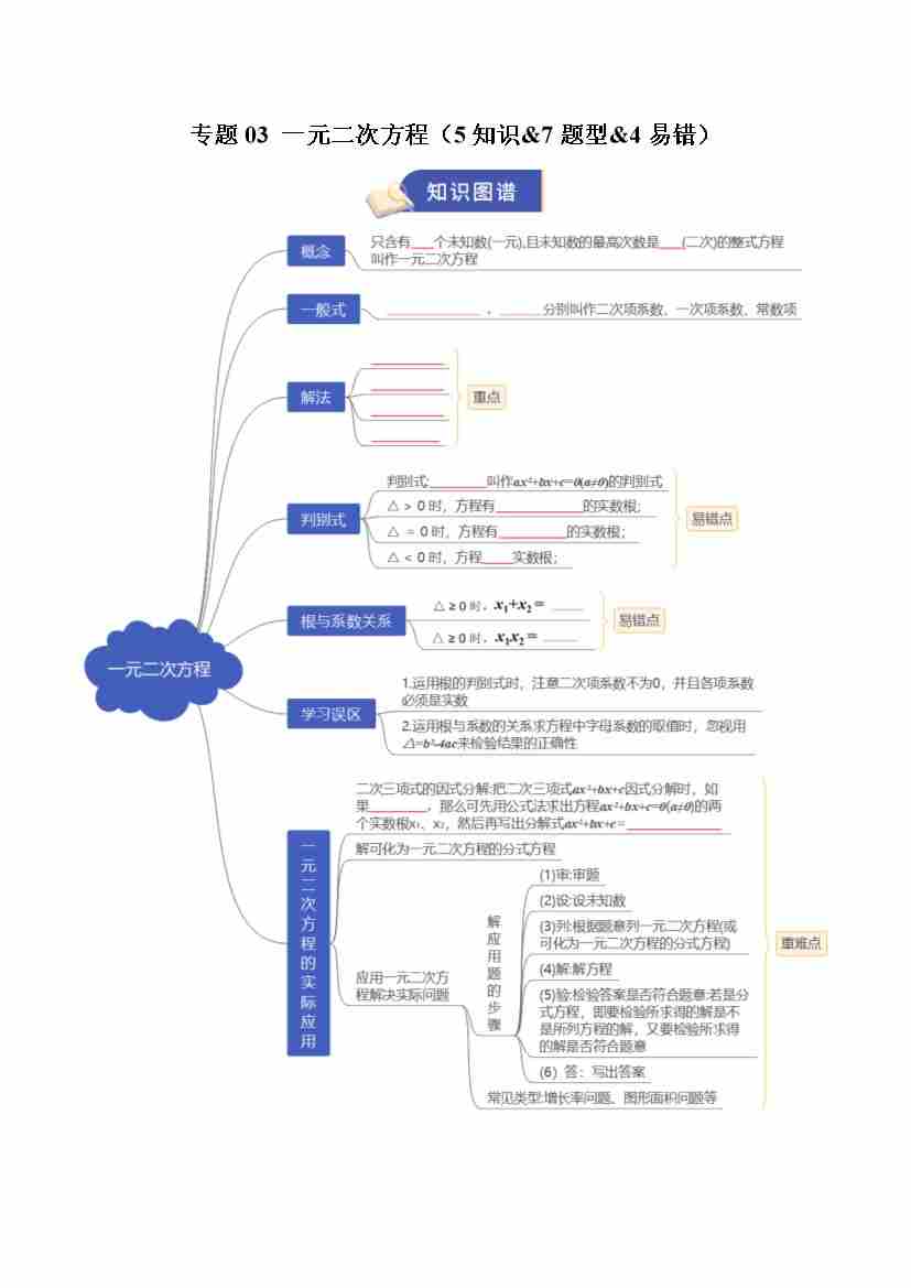 专题03 一元二次方程(5知识7题型4易错)(期末复习知识清单)(学生版)