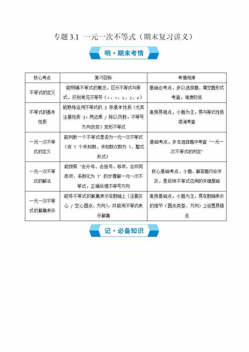 专题3.1 一元一次不等式(期末复习讲义)学生版