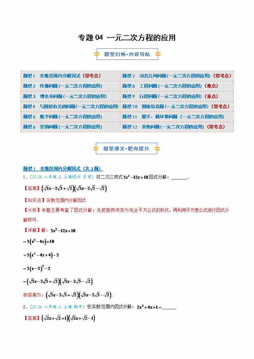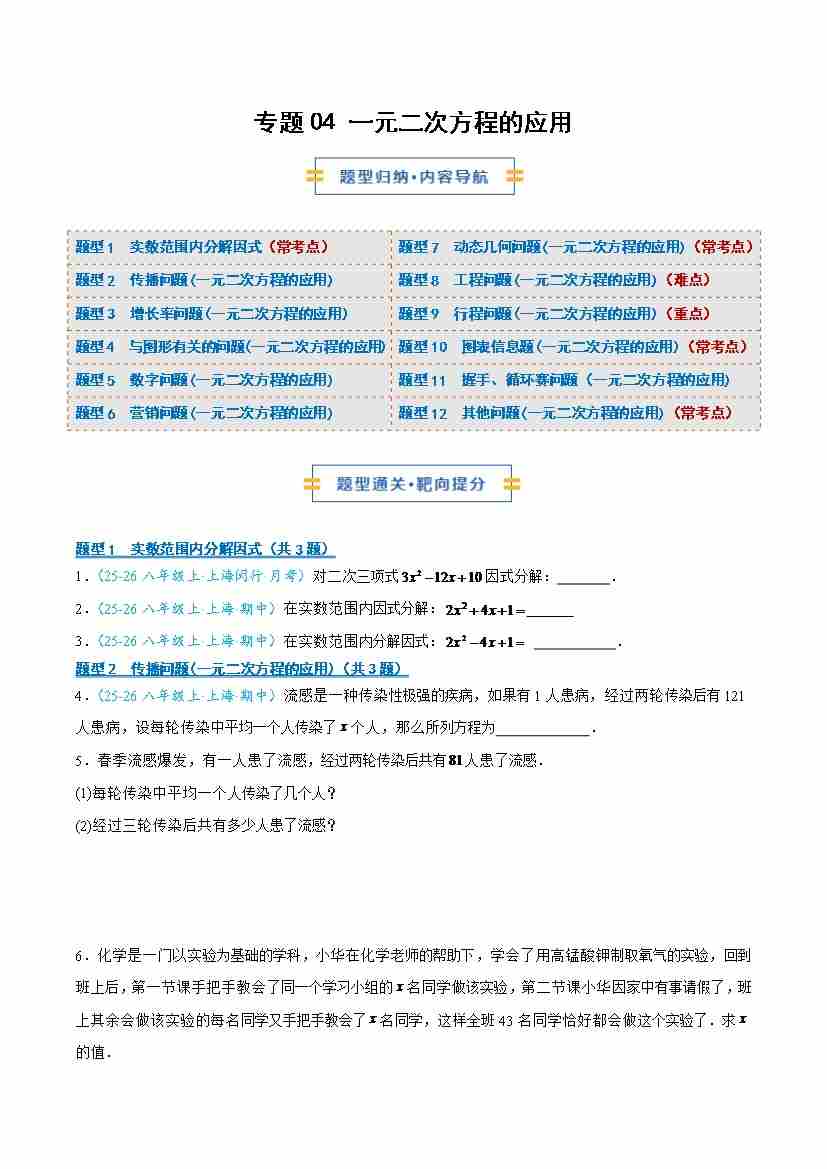 专题04 一元二次方程的应用(学生版)