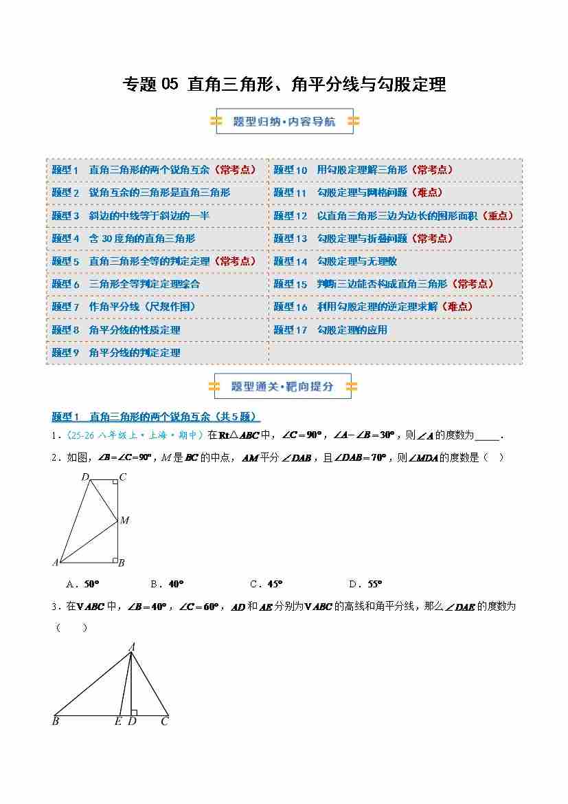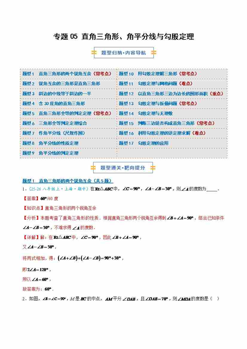 专题05 直角三角形、角平分线与勾股定理(学生版)