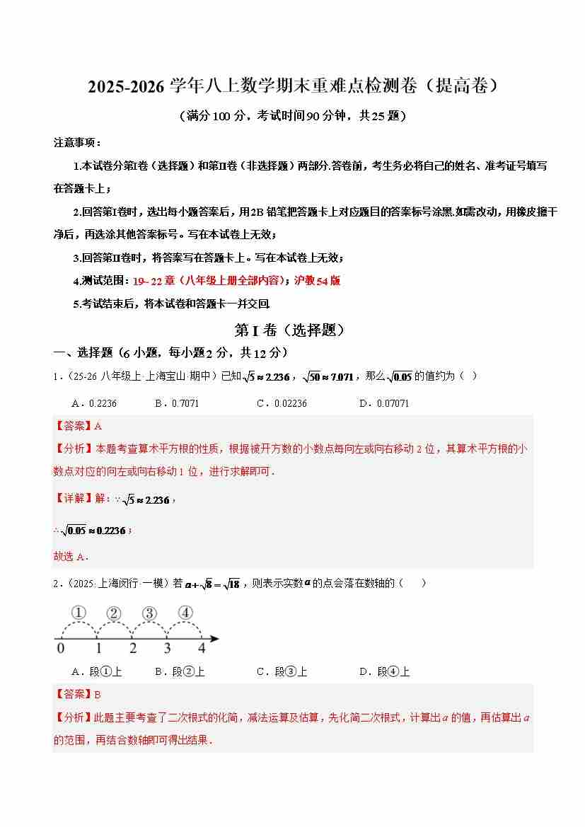 八上数学沪教54期末重难点检测卷(提高卷)(考试范围:19~22章 八年级上册全部内容)(解析版)