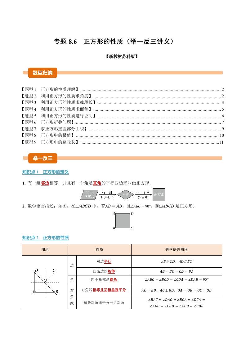 专题8.6 正方形的性质(举一反三讲义)(试题版)