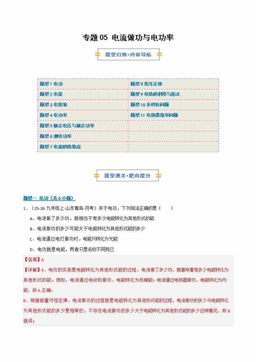 专题05 电流做功与电功率(期末知识清单)(教师版)