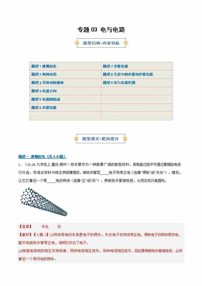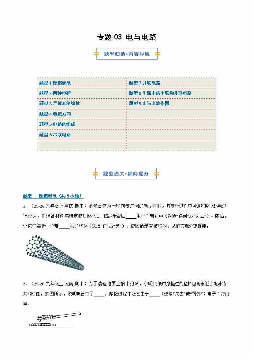 专题03 电与电路(期末专项训练)(学生版)