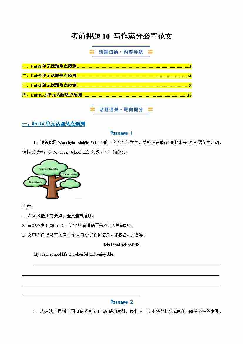考前押题10 写作满分必背范文(Units 1-6,期末复习专项训练)(学生版)