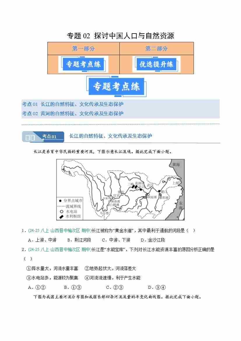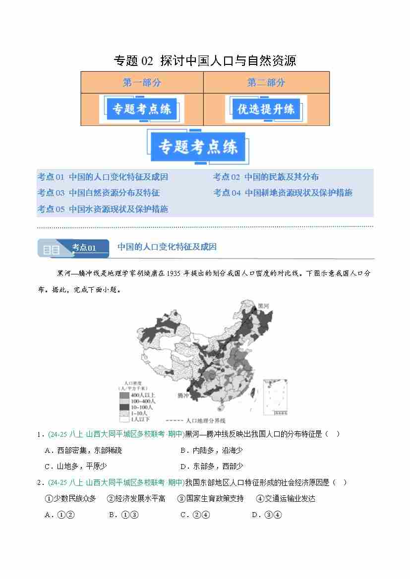 专题02 探讨中国人口与自然资源(百题精选)(期中真题汇编)(解析版)