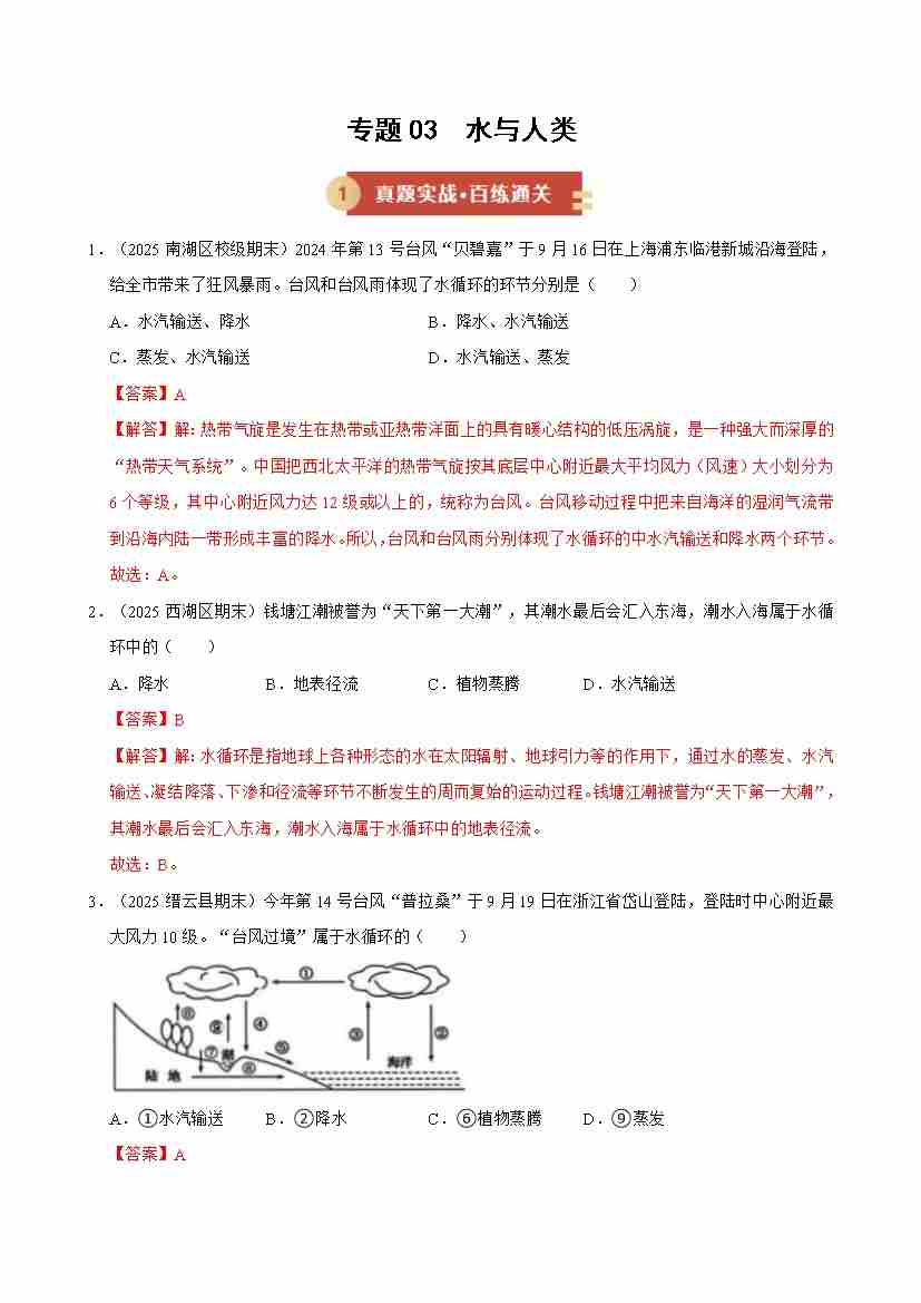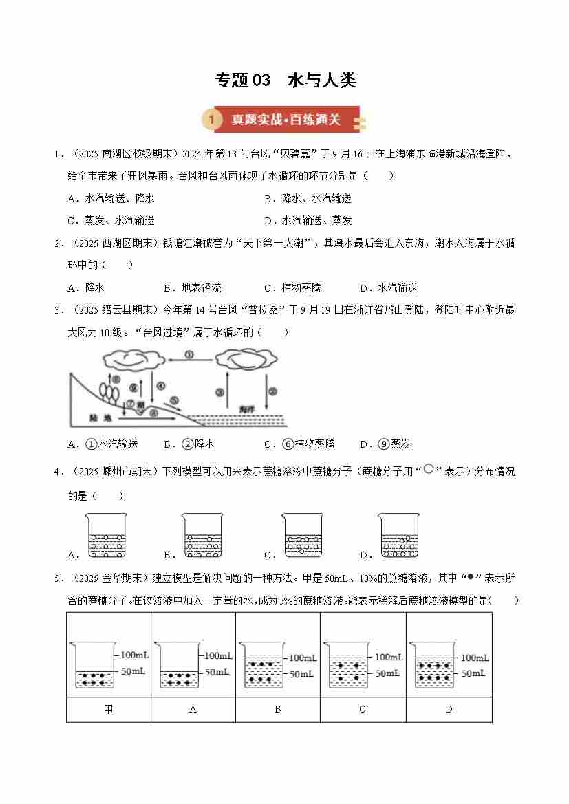 八年级科学上学期期末模拟卷(新教材浙教版)(全解全析)