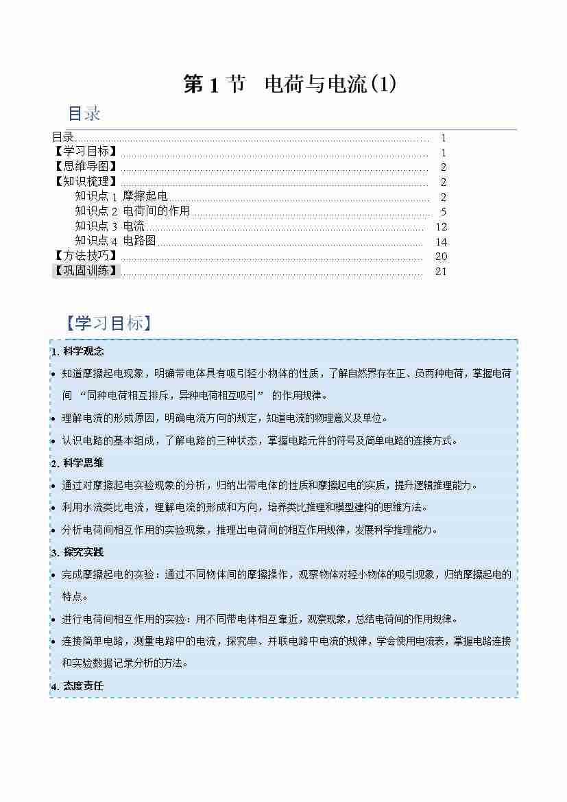 第1节 电荷与电流 第1课时(举一反三讲义)(解析版)