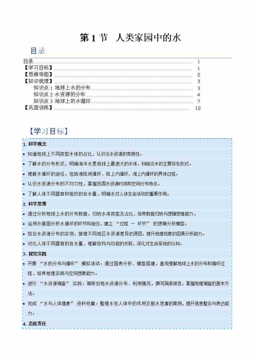 第1节 人类家园中的水(举一反三讲义)(原卷版)