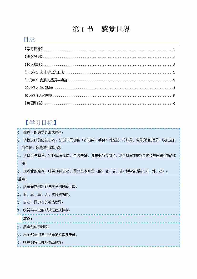 第1节 感觉世界(举一反三讲义)(原卷版)