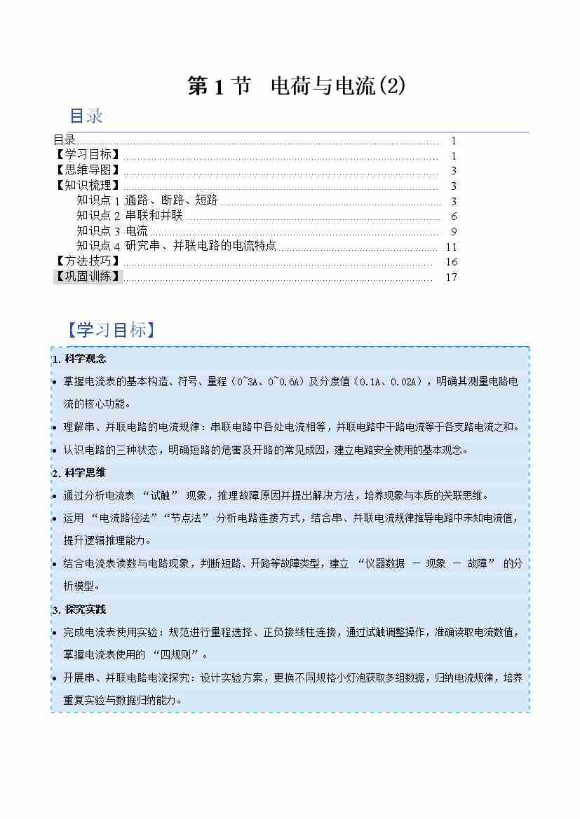 第1节 电荷与电流 第1课时(举一反三讲义)(原卷版)