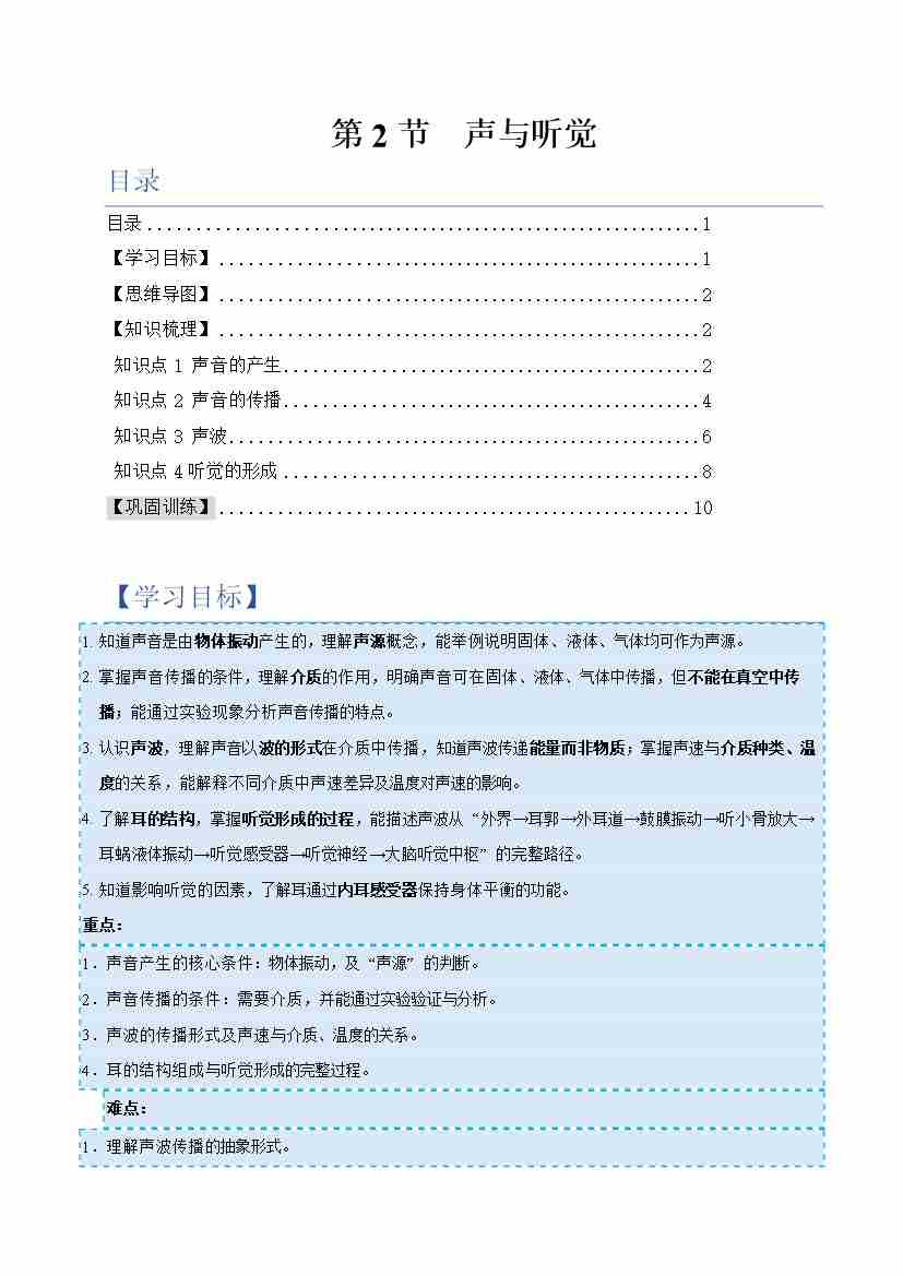 第2节 声与听觉(举一反三讲义)(原卷版)