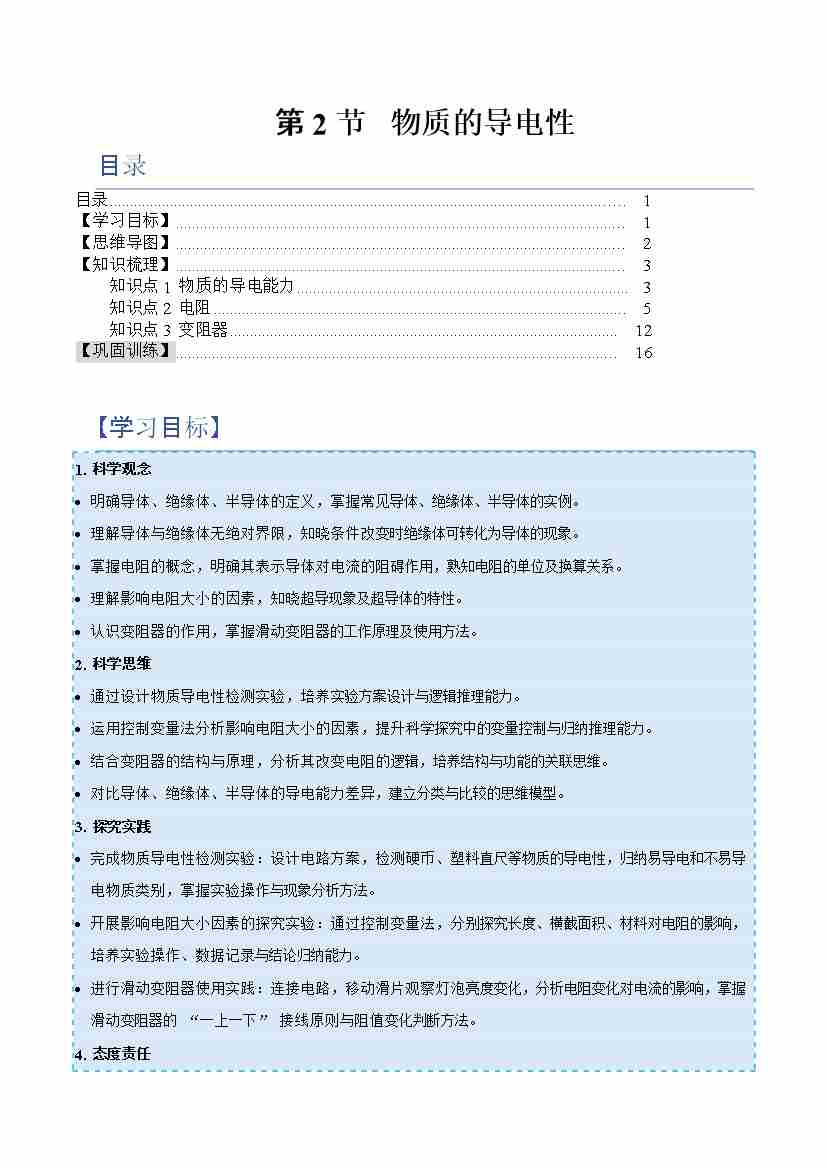 第2节 物质的导电性(举一反三讲义)(解析版)