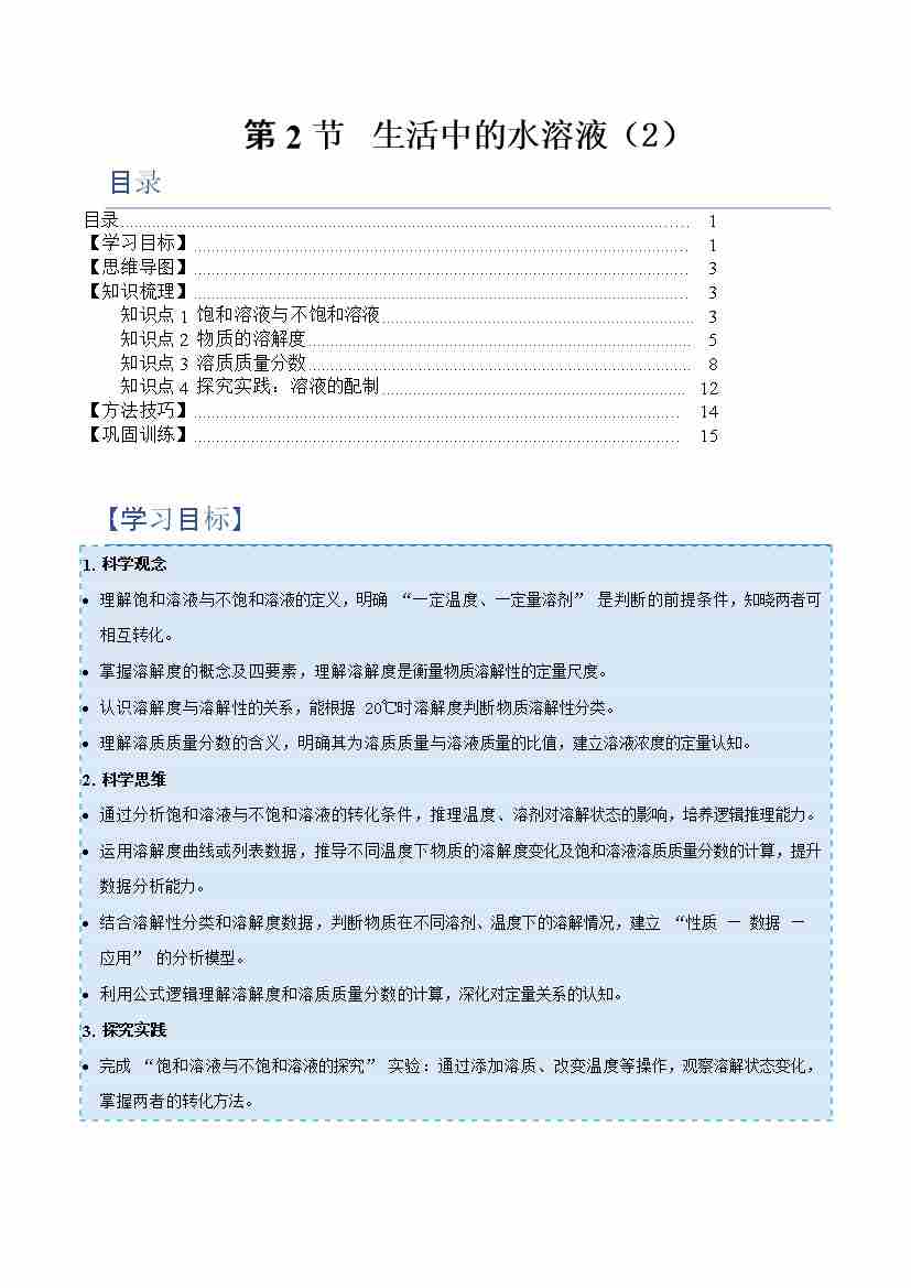 第2节 生活中的水溶液 第2课时(举一反三讲义)(原卷版)
