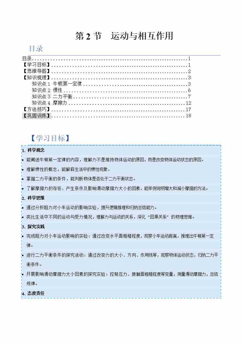 第2节 运动与相互作用(举一反三讲义)(原卷版)