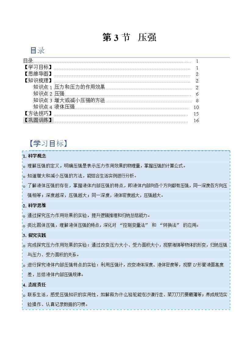 第3节 压强(举一反三讲义)(原卷版)