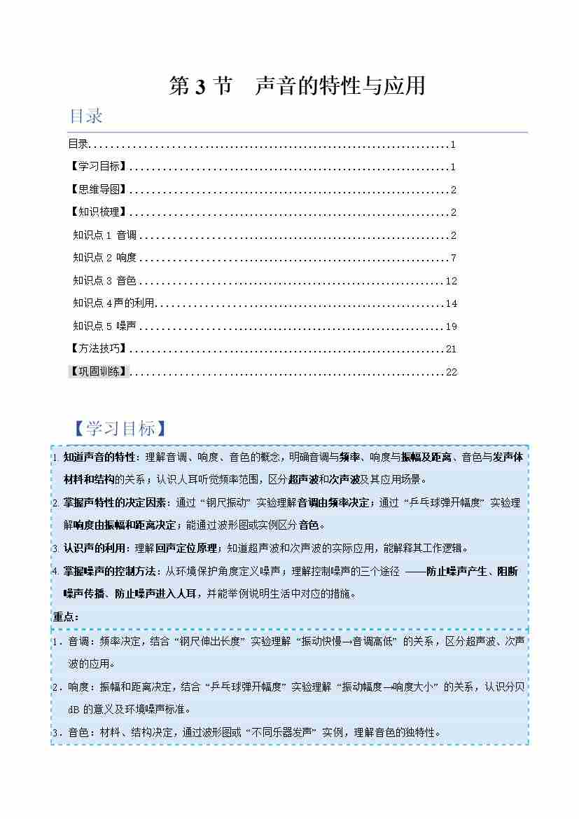 第3节 声音的特性与应用(举一反三讲义)(原卷版)