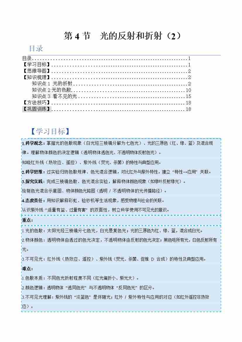 第4节 光的反射和折射第2课时(举一反三讲义)(解析版)