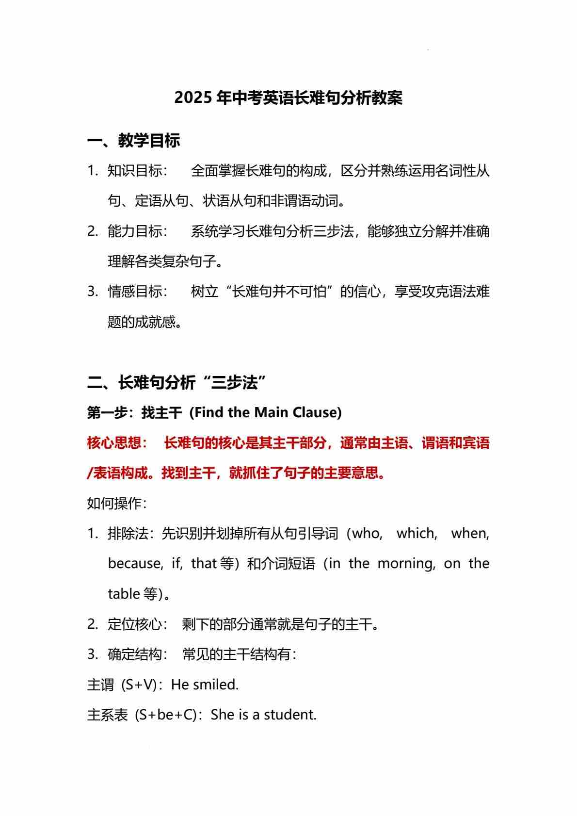 2025年中考英语长难句分析教案